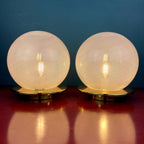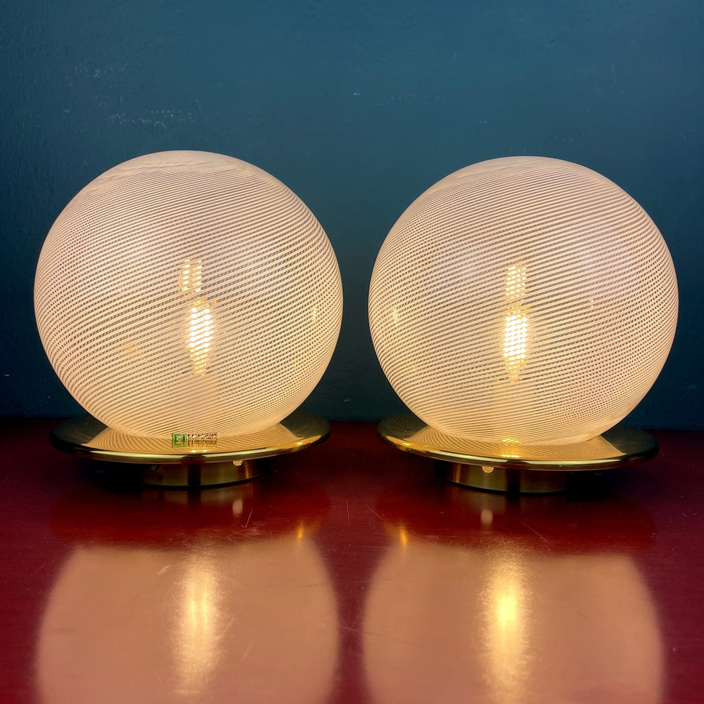 Vintage Murano Glass Table Lamps: F.Fabbian Italian Modern Sphere Set